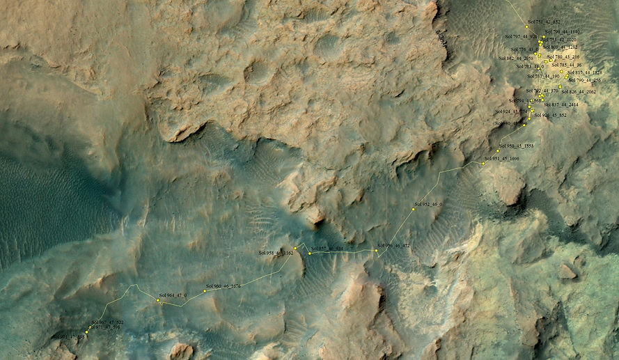 MSL a passé environ un an entre le site d'atterrissage (Bradbury) et YKB - Yellow-Knife Bay / Glenelg.